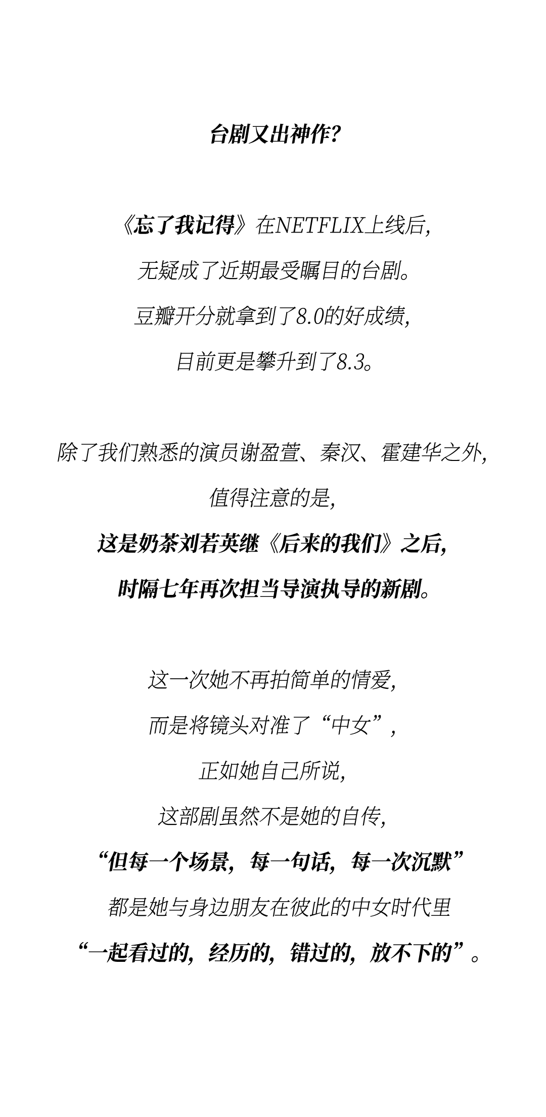 近几年,谢盈萱好像成为了这样“俗女”面孔的最佳代言人。她出演了一个又一个并不成功的中年人,他们面对着各自不同的婚姻、事业、友情、亲情的课题,允许自己无可奈何,被迫承认自己束手无策,然后努力撑了下来,努力往前探一探。她在荧幕上演遍了像这样的“中女”,待观众慢慢长到这个年纪,开始忍下同样的无奈,抬头一看,前方还站着以前那个谢盈萱。正如网友所说,“仿佛人生的每一步都有谢盈萱探路”。